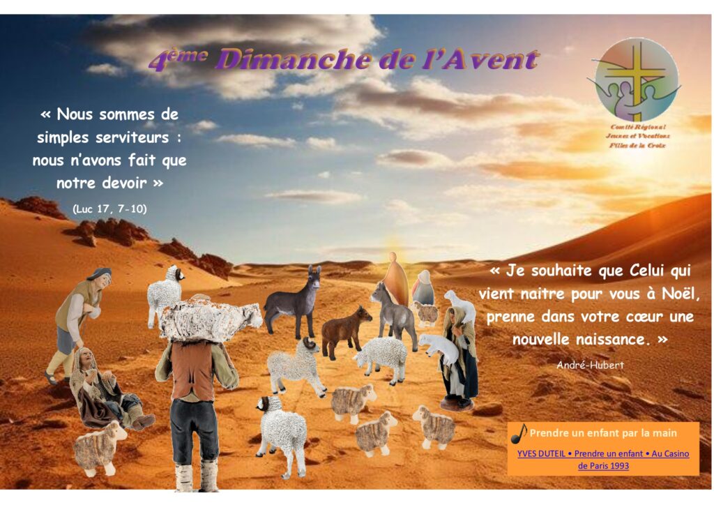 Dernier dimanche de l’Avent, nous nous rapprochons de la lumière de Noël. Il vous est proposé de déposer une intention de prière sur ce site des « Filles de la Croix-jeunes & vocation », pour :